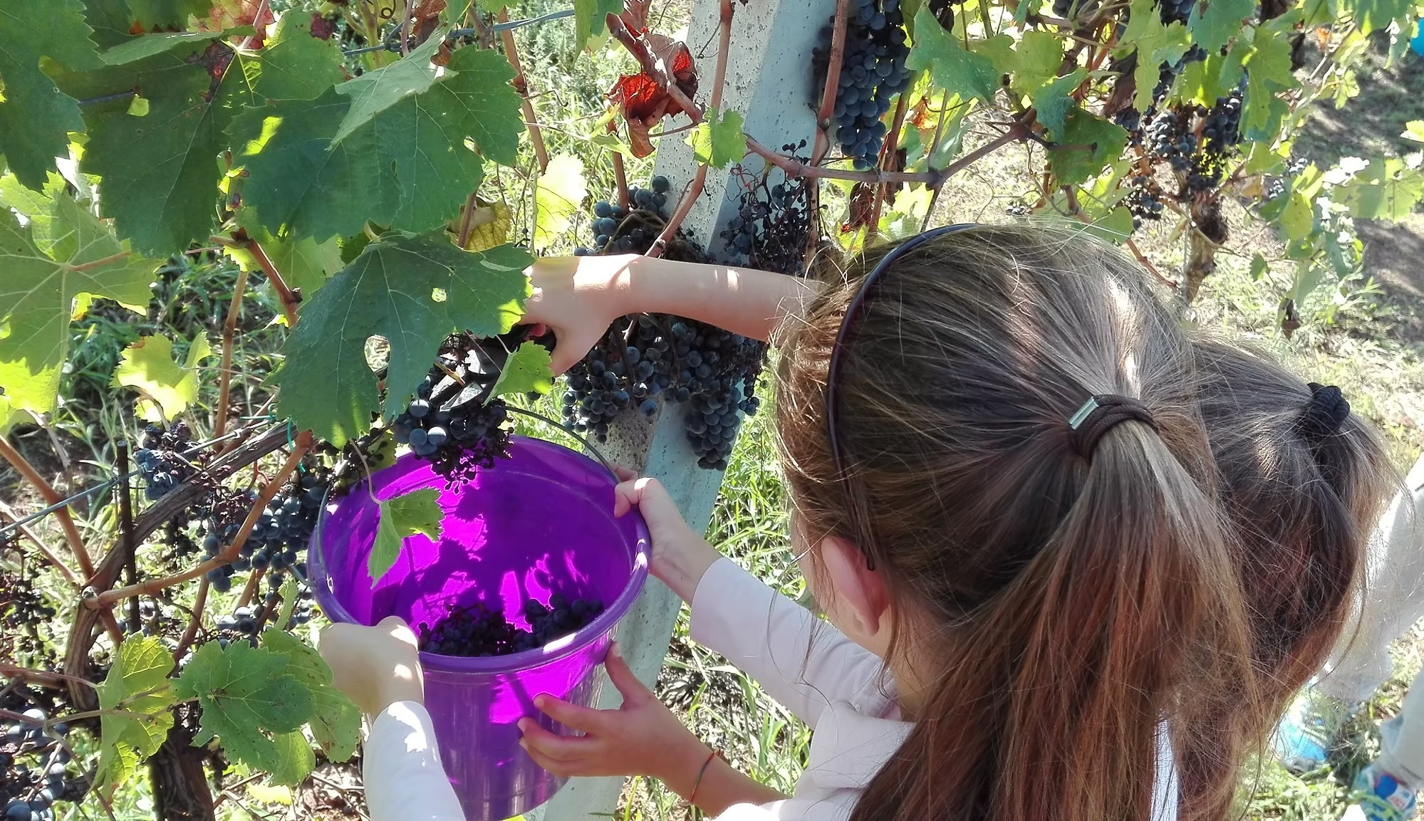 - Osserviamo e conosciamo la pianta della vite e poi, muniti di secchi e forbici, andiamo a raccogliere l'uva nei filari