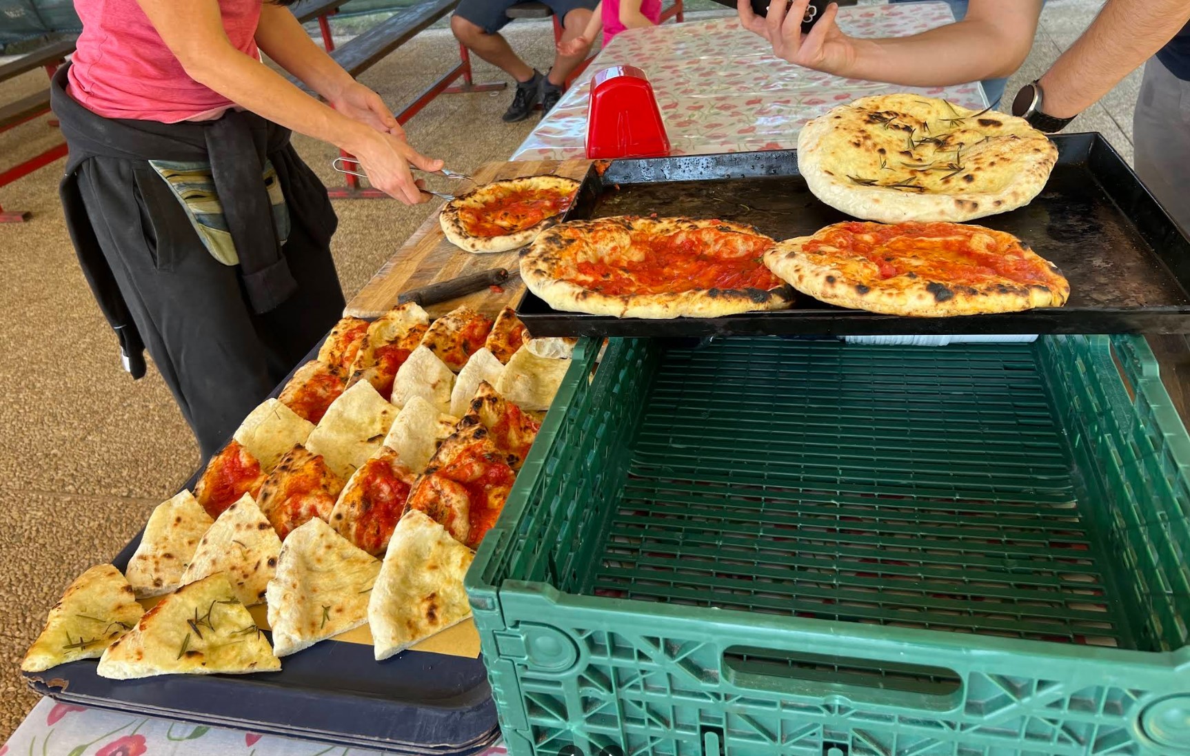 - Merenda (la pizza fatta dai ragazzi) cotta nel nostro forno a legna e servita in giardino