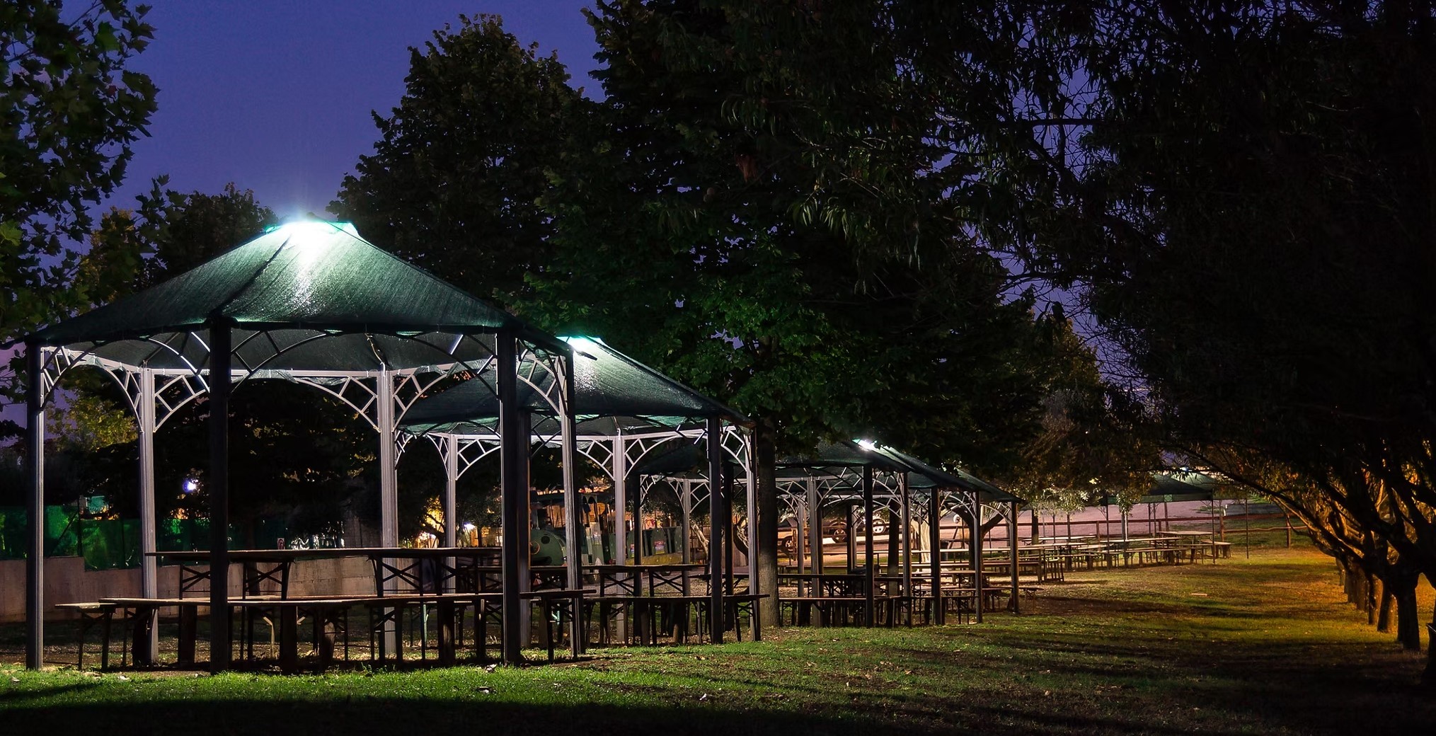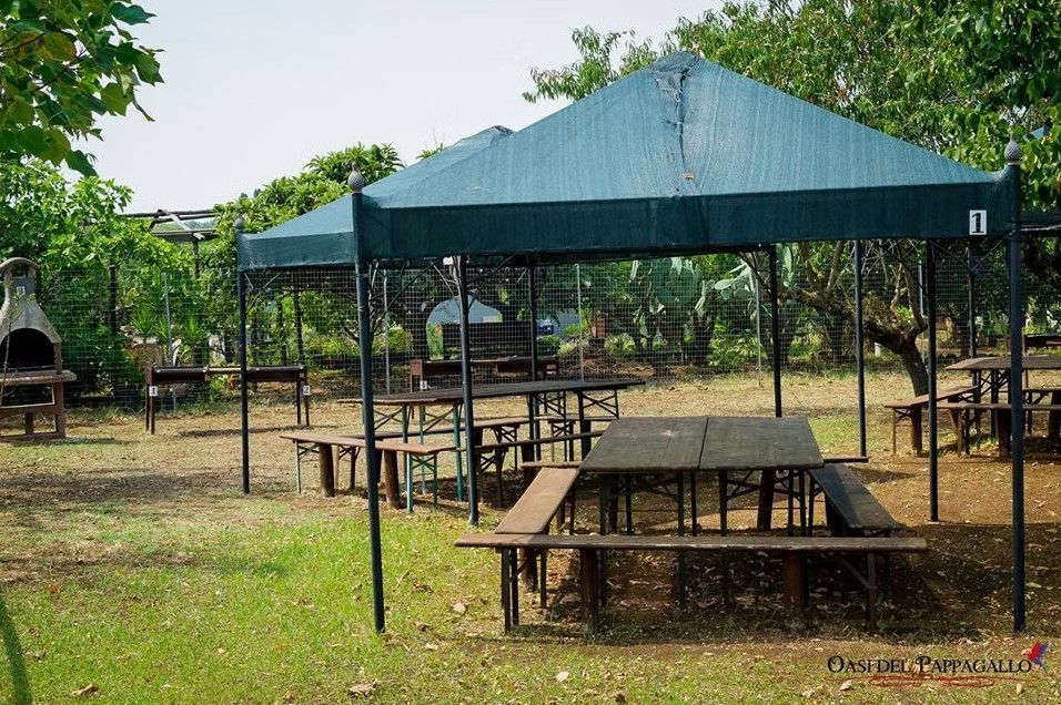 L'area completamente immersa nel verde, è attrezzata con gazebi, panche, tavoli e barbecue.