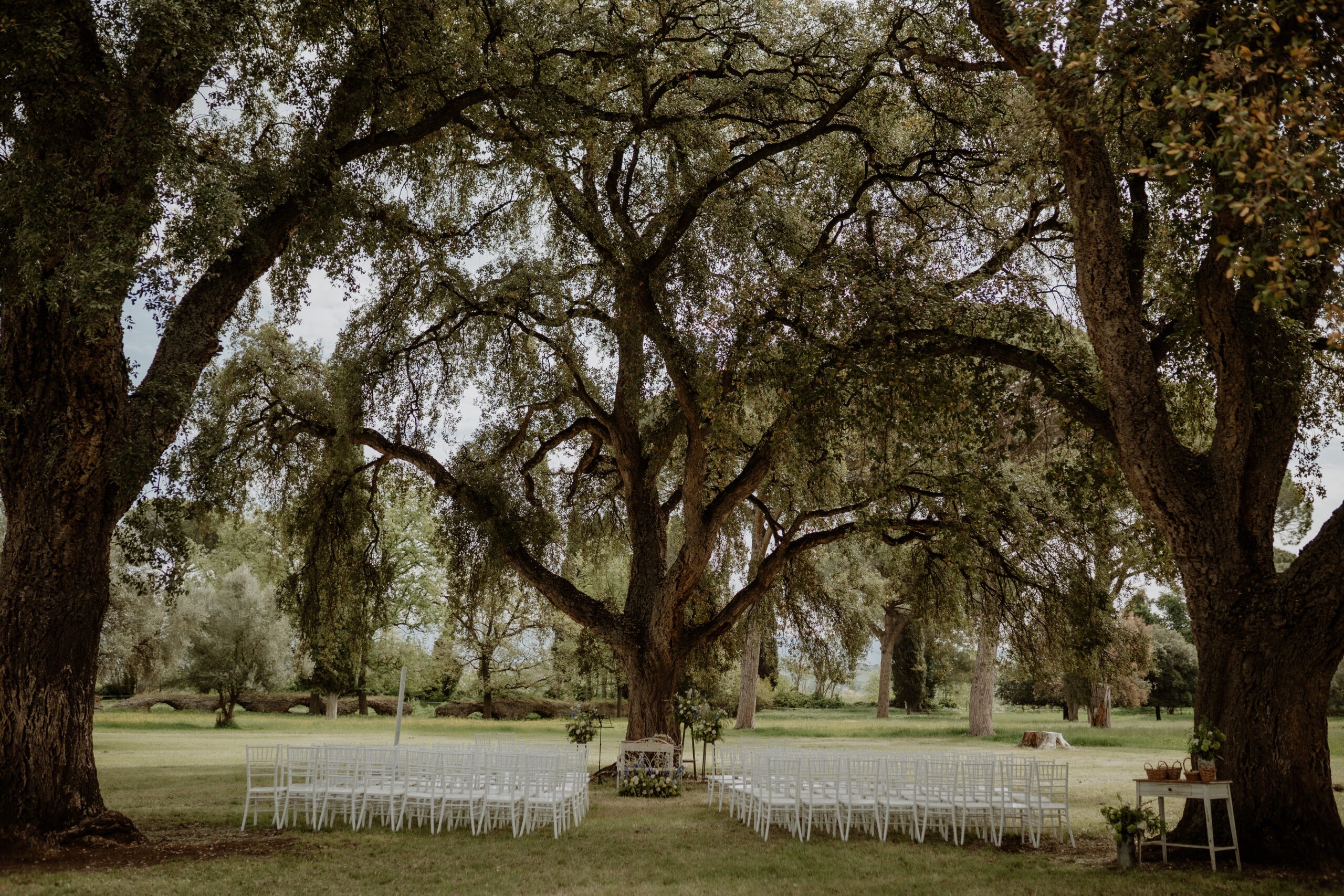 Da oltre 15 anni la Tenuta si propone come location ideale per matrimoni ed eventi privati, mettendo a disposizione di tutti i suoi tesori naturali e architettonici finora rimasti inesplorati dal grande pubblico. Gli esterni si caratterizzano con le connotazioni più diverse. Gli scenari si aprono sulle rovine romane dell’Acquedotto Alessandrino III D.C. e sui giardini curati, distese di campi coltivati e radure di sughere centenarie. L’ Acquedotto Alessandrino è stato l’ultimo dei grandi acquedotti costruiti a Roma e fu realizzato nel 226 d.C. da Alessandro Severo da cui prende il nome. L’acquedotto capta l’acqua dalle sorgenti che scaturiscono circa tre chilometri a nord di Colonna, nei pressi di Pantano Borghese; fu voluto dall’imperatore per alimentare le terme neroniane in Campo Marzio, tra il Pantheon e Palazzo Madama, da lui ricostruite e denominate Alessandrine. L’acquedotto fu costruito mettendo a frutto tutte le capacità tecniche del tempo che consentivano leggerezza di masse ed economia di materiali. Aveva un nucleo cementizio rivestito in opera laterizia e il suo percorso si snodava quasi tutto sopraterra attraverso arcuazioni continue: la sua lunghezza è calcolata in 22 chilometri circa e la sua portata era pari a 529 quinarie corrispondenti a 243,34 litri al secondo. Già in epoca antica la costruzione subì una serie di importanti rifacimenti a cominciare dal III-IV sec. d.C. (testo tratto dal sito del Comune di Roma, Municipio Roma VII).