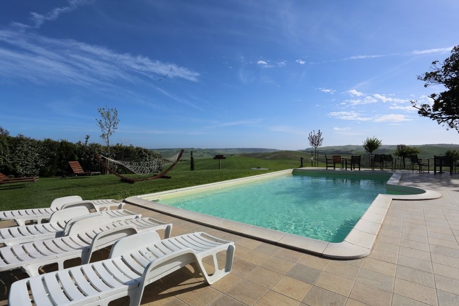 La piscina è attrezzata con lettini e un'amaca dove potersi rilassare e godere del silenzio del paesaggio.