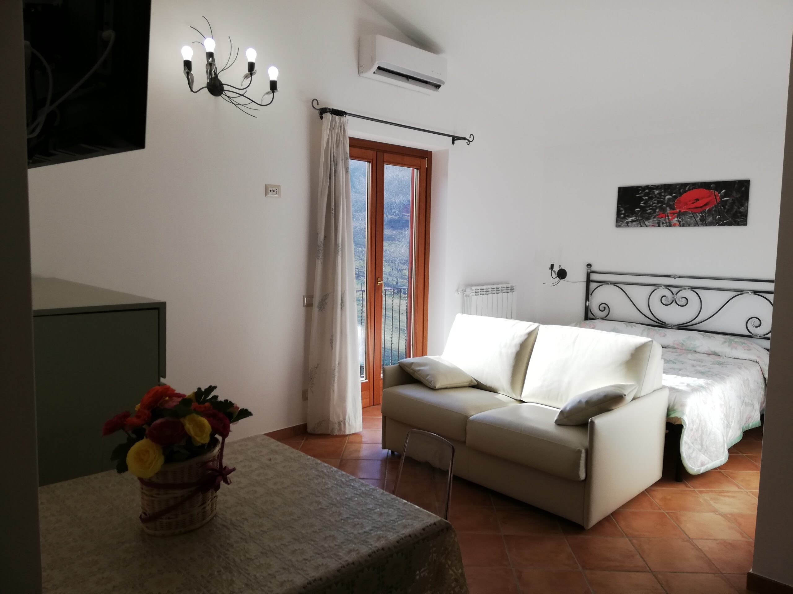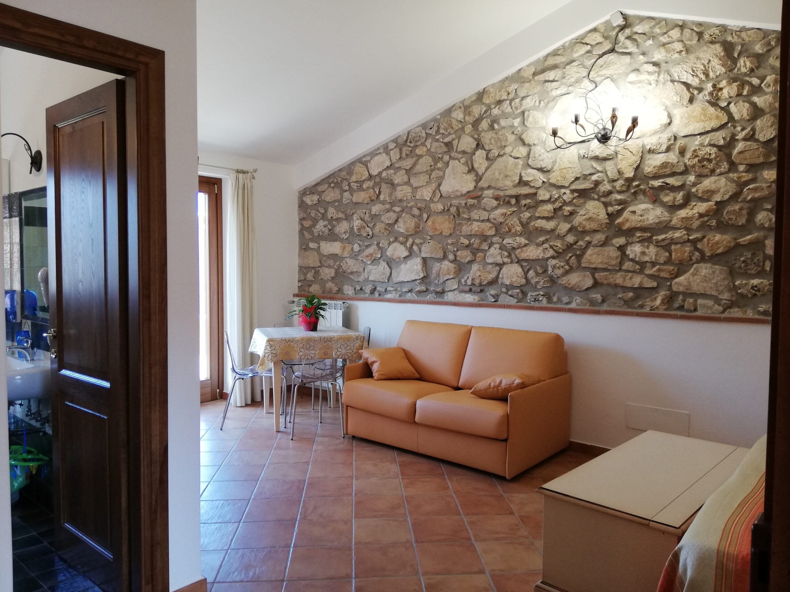 Quattro di essi sono appartamenti monolocali con angolo di servizio attrezzato ( lavabo, frigo, etc.), capaci di ospitare 3/4 persone grazie al letto matrimoniale e al divano-letto da una piazza e mezzo. L’ultimo alloggio invece è una camera con le stesse caratteristiche degli altri, ma priva di angolo di servizio.